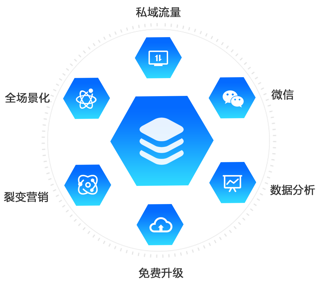 致力提供全渠道解决方案,通过抢购、分销、拼团、内容种草、联盟推流快速实现流量整合,客户沉淀,助力企业快速步入社交电商时代。