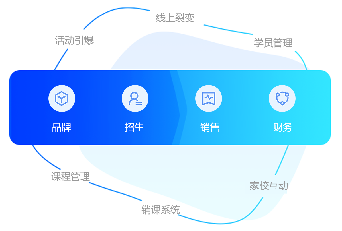 招生跟踪,销售跟进,学员管理,课程管理,销课系统,财务统计,